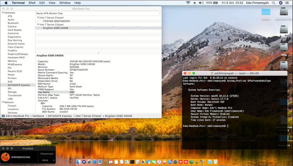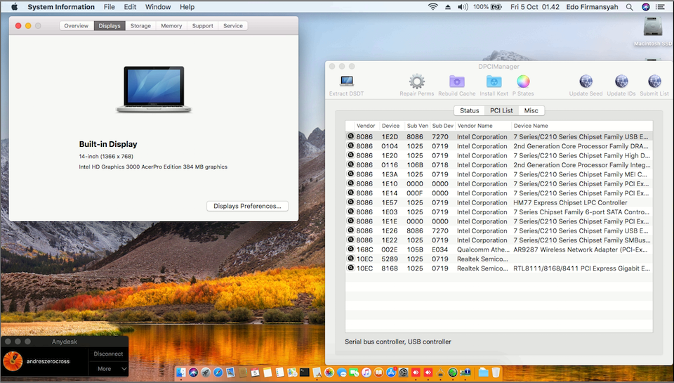 Success Hackintosh High Sierra 10.13.6 Build 17G65 at Acer Aspire E1-471