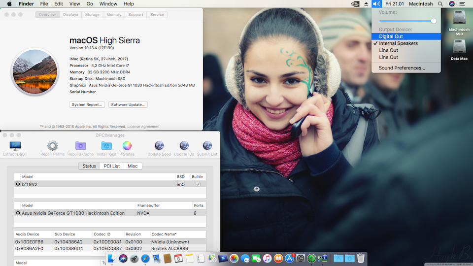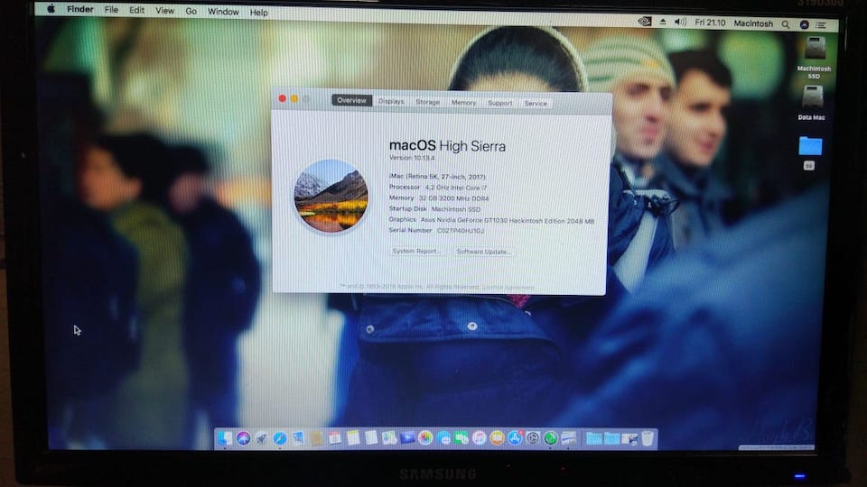 Success Hackintosh macOS High Sierra 10.13.4 Build 17E199 at Asus Prime Z270M-Plus + i7 7700K + Asus GT1030 2GB DDR5