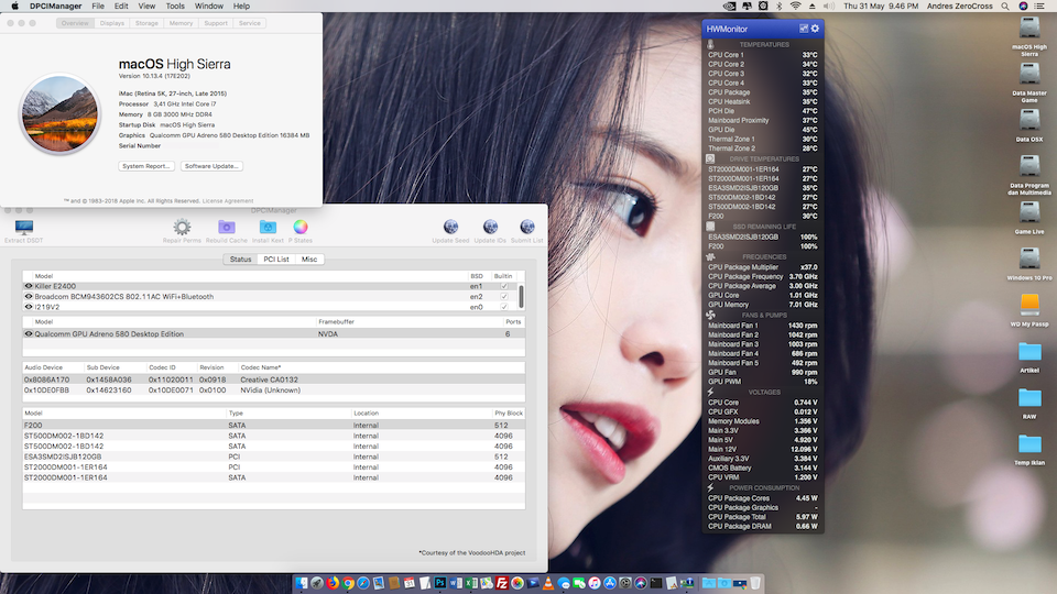 - Storages : 6 Storages (120GB SSD Natno For Windows 10 Enterprise, 120GB Fujitsu for macOS High Sierra 10.13.4, 2TB For Data Multimedia / Program, 2TB for Master Game Installer, 500GB For Data OS X, 500GB for Game Live Installed)