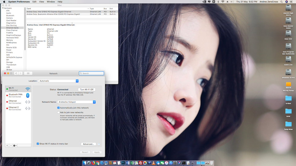 - Ethernet : Dual LAN - Killer LAN E2400 dan Intel I219V