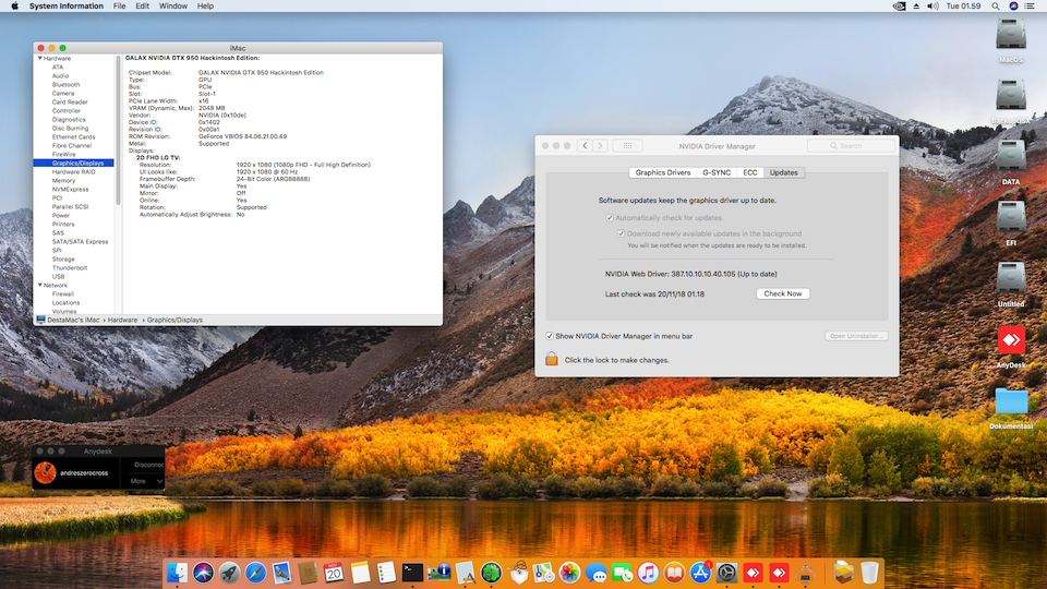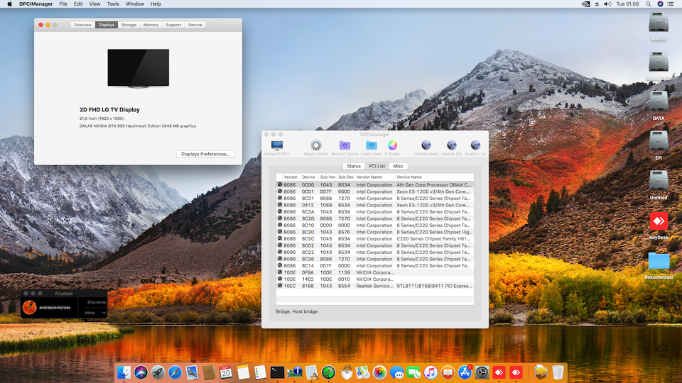 Success Hackintosh macOS High Sierra 10.13.6 Build 17G65 at Asus H81M-E + Intel Core i5 4460 + Galax GTX 950