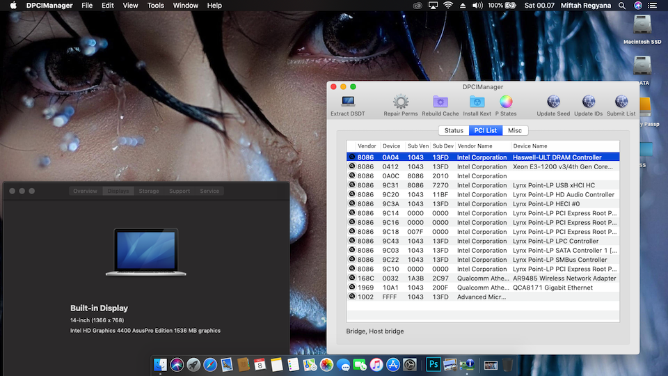 - Bluetooth (partial working, need boot from windows first then restart to macOS)