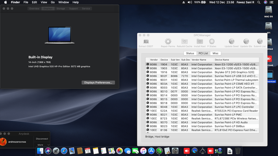 Success Hackintosh macOS Mojave 10.14.2 Build 18C54 at HP Pavilion 14-AB130TX