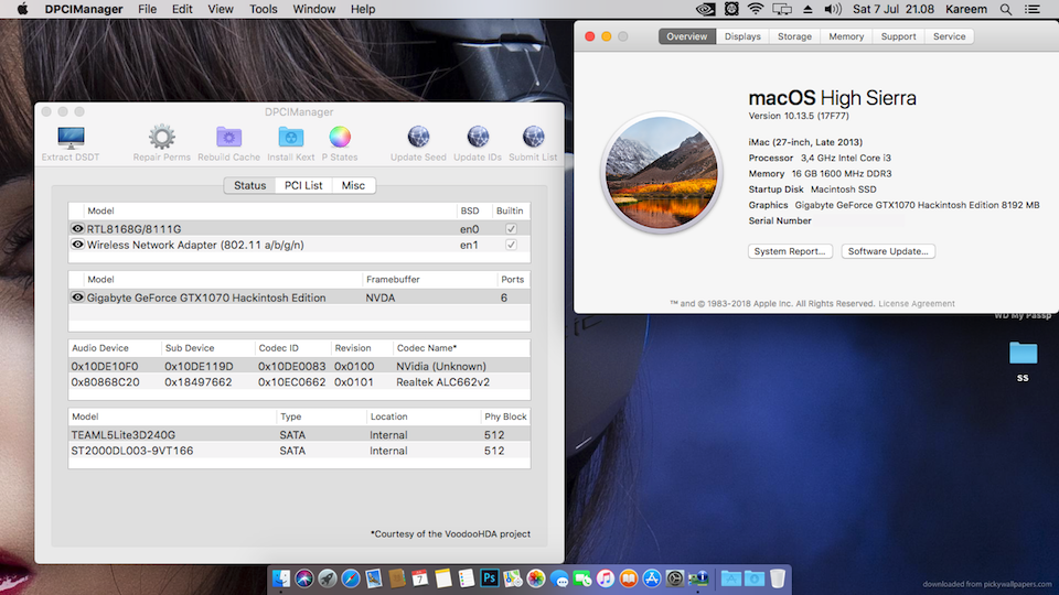 Success Hackintosh macOS High Sierra 10.13.5 Build 17F77 at Asrock H81M-HDS + Intel Core i3 4130 + GTX 1070 8GB