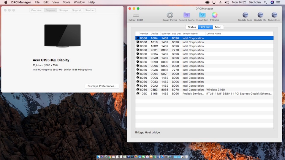 - Wifi (Intel Series is not supported by Hackintosh)