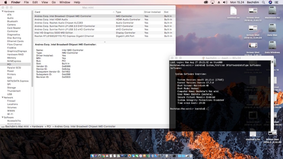 Success Hackintosh macOS High Sierra 10.13.6 Build 17G65 at MSI Cubi-Mini PC Kit Cubi-001BUS