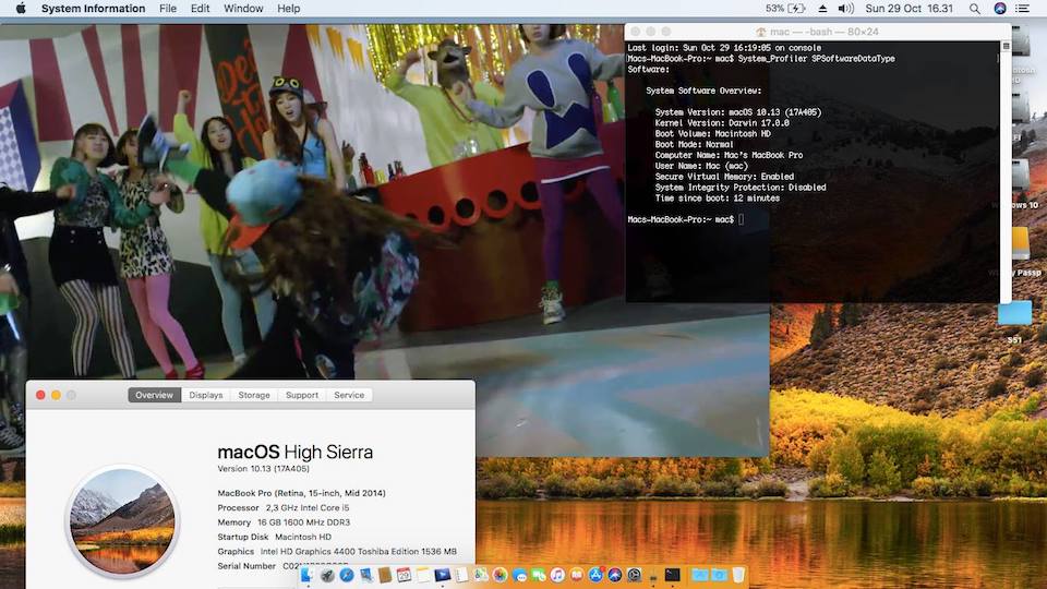 Success Hackintosh macOS High Sierra 10.13 Build 17A405 at Toshiba Satelite E45T - R4100 (Bios Version 1.5)
