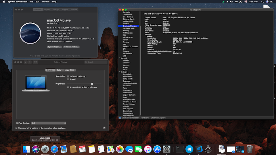 Success Hackintosh macOS Mojave 10.14.1 Build 18B75 at Xiaomi Notebook Air 12.5 Inchi 2017