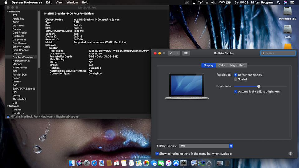 Success Hackintosh macOS Mojave 10.14.2 Build 18C54 at Asus A450LC-WX048D