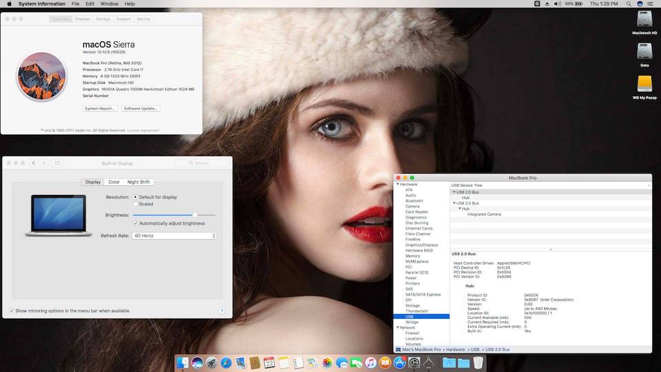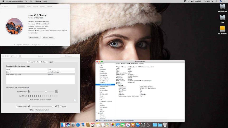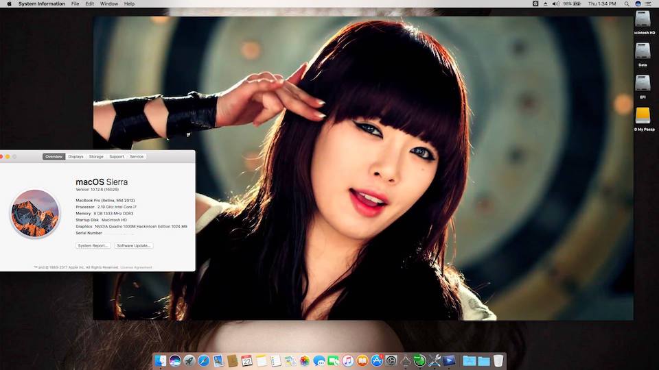 Success Hackintosh macOS Sierra 10.12.6 Build 16G29 at Lenovo W520